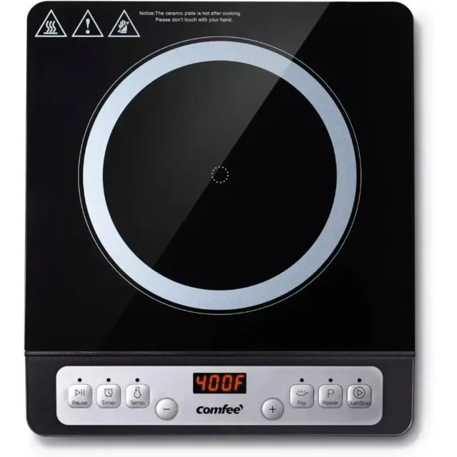 This induction cooktop is equipped with 8 adjustable power levels ranging from 300W to 1800W and temperature settings from 160°F to 440°F. Whether you’re slow-cooking a stew, searing a steak, or boiling water in minutes, this cooktop adapts to your needs. The intuitive push-button controls and LED display make it easy to select the perfect heat setting for any dish.