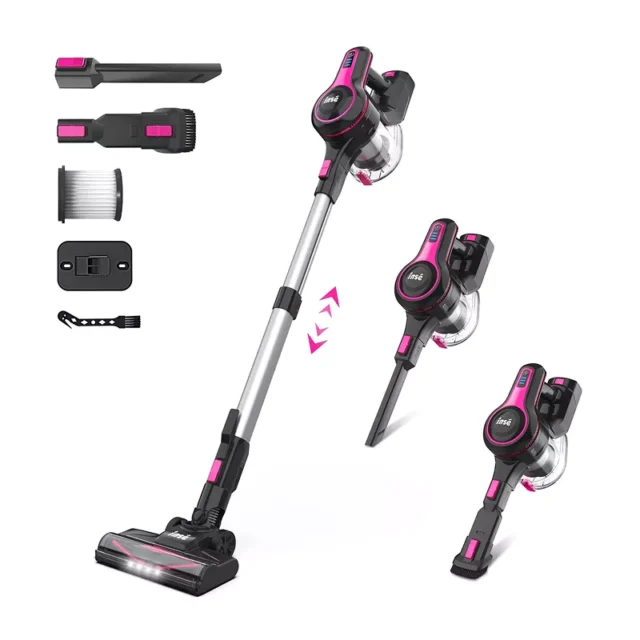 Discover effortless cleaning with the 20Kpa Cordless Stick Vacuum Cleaner, designed to tackle all your household cleaning needs. This lightweight, powerful vacuum cleaner is perfect for hard floors, low-pile carpets, and pet hair, ensuring a spotless environment with minimal effort. The stylish rose red design not only complements your home decor but also provides superior functionality. Equipped with advanced features such as a 6-in-1 multifunctional design, 150° swiveling head, and LED lights, this vacuum makes cleaning more efficient and enjoyable.