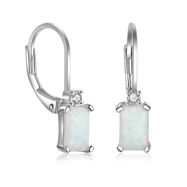 925 Sterling Silver Rectangular Created White Opal Earrings for Women