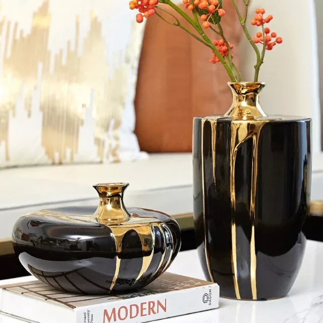 Elevate your home’s ambiance with our Modern Luxury Ceramic Vase, a perfect blend of sophistication and style. Designed to enhance any living space, this stunning piece is more than just a vase; it’s a statement of elegance. Its sleek black and gold design adds a touch of luxury to your living room, making it an ideal choice for those who appreciate the finer things in life.