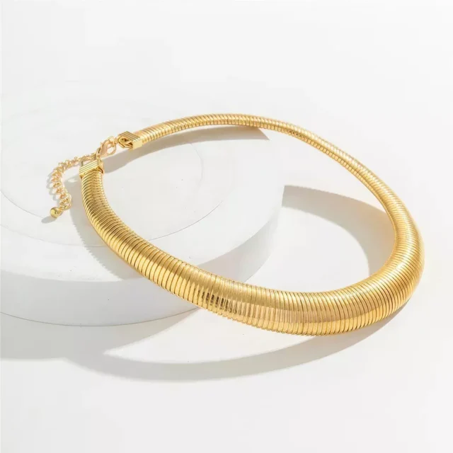Whether you’re stepping out for a night on the town or want to make a statement at a special event, the Glamour Spiral Chunky Choker Necklace is your go-to accessory for turning heads and sparking conversations. Its versatile design complements any style, from edgy and grunge to elegant and chic. Don’t settle for ordinary jewelry—unleash your boldness and embrace your unique style with our captivating choker necklace. Indulge in the allure of the Glamour Spiral Chunky Choker Necklace today and set yourself apart from the crowd. With its eye-catching design and impeccable craftsmanship, this necklace is more than just an accessory—it’s a symbol of your confidence, individuality, and impeccable taste.