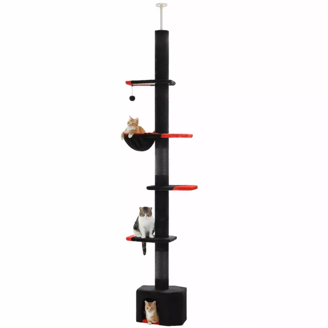 Give your beloved cat a throne worthy of the dark and elegant world of gothic aesthetics. This floor-to-ceiling cat tree is designed for feline adventurers who love to climb, scratch, and lounge in mysterious comfort. With its rich black and red color scheme, coffin-shaped platforms, and spacious condo, this cat tree is more than just furniture—it’s a statement piece.