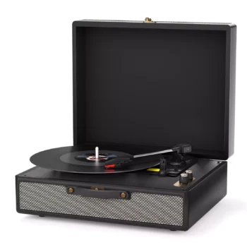 Portable 3-Speed Vinyl Record Player with Bluetooth, AUX, USB, and Stereo Speakers