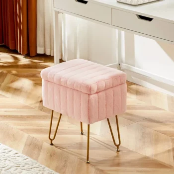 Faux Fur Padded Storage Stool with Adjustable Legs