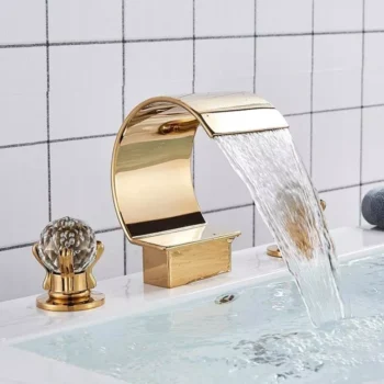 Waterfall Bathroom Basin Faucet – Deck Mounted Cold & Hot Water Mixer, 3 Holes