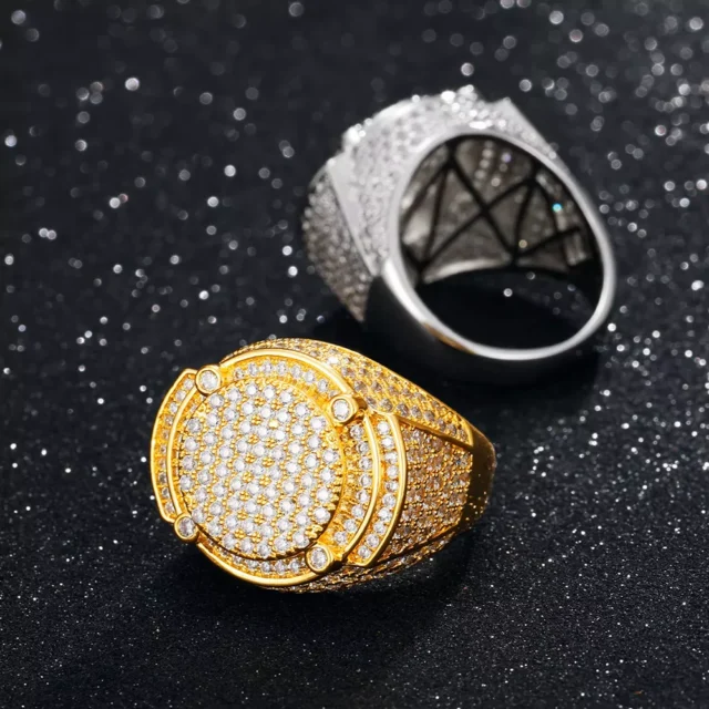 Designed for men who embrace the hip-hop and rock lifestyle, this ring delivers both fashion and attitude. Crafted from durable copper and plated in a luxurious white gold finish, it gives you that high-end look without the high-end price. The pave setting enhances the brilliance of the stones, ensuring a premium shine that lasts. Whether you choose gold or silver, this piece is made to match any outfit and any occasion.