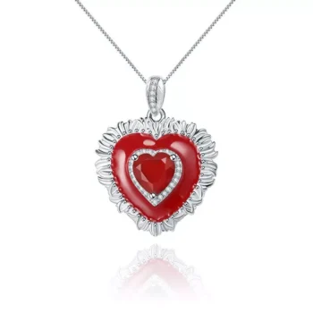 Red Agate Heart Pendant Necklace in 925 Sterling Silver – Classic Vintage Jewelry for Women