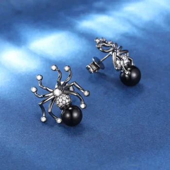 Minimal Black Spider Stud Earrings with Moissanite for Unisex – Trendy Hip Hop Jewelry
