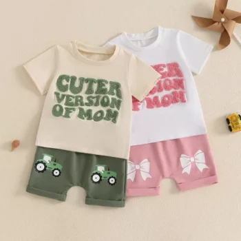 Toddler Baby Boys Girls Letter Embroidery T-Shirt & Bow Pattern Shorts 2-Piece Set