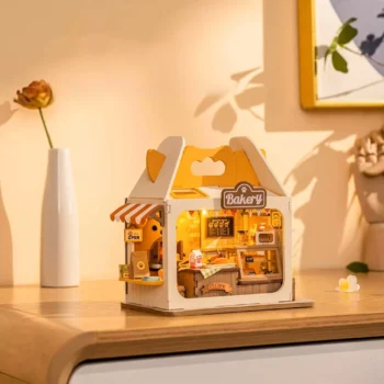 DIY Miniature Dollhouse Bakery Kit with LED – Food Box Shop Diorama Set