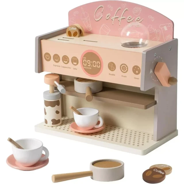 This coffee maker play set makes an ideal gift for birthdays, holidays, or just as a special treat. Its thoughtful design and charming colors make it a delightful addition to any playroom. Perfect for pretend play, learning, and sparking creativity, this toy is a must-have for young minds eager to explore and create.