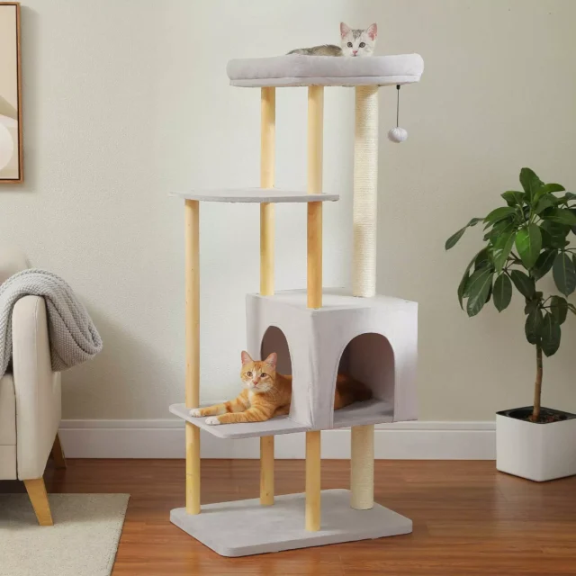 Looking for the ultimate cat furniture to fit your larger feline friends? This 53-inch modern wooden cat tree is designed with large cats in mind, offering them plenty of room to climb, jump, scratch, and relax. Its sleek, contemporary design not only fits beautifully into any home décor, but it also provides a functional space where your cats can be active, happy, and healthy. Whether your cats love to explore, scratch, or nap, this multi-level cat tree is the perfect addition to their play area.