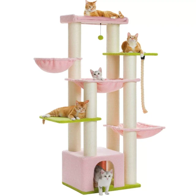 This large cat tower is not just another pet accessory—it’s a dedicated space that your cats will love. With its oversized design and exceptional stability, it ensures that even the most energetic cats can climb, leap, and play without worrying about tipping or instability. The inclusion of multiple levels and cozy spots makes it the ideal retreat for cats who crave variety in their playtime and naptime. Whether you have a single large cat or a bustling multi-cat household, this tower offers everything your felines need to stay entertained, active, and relaxed. Plus, the thick sisal posts make it an excellent option for protecting your furniture from scratching damage.