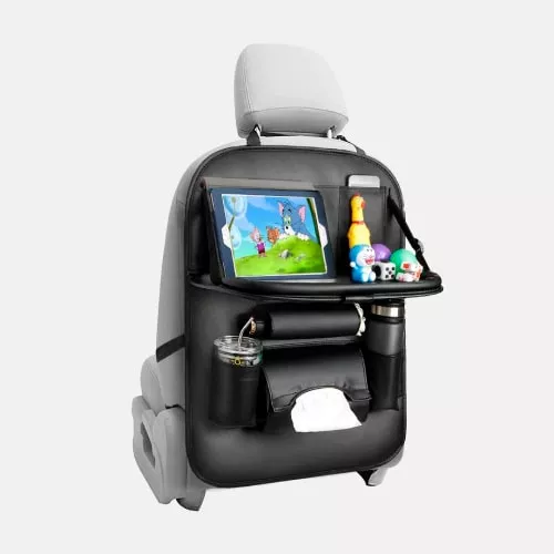 Wasn't sure I'd like this car seat back organizer as much as I do, but it's been fantastic. Keeps the backseat of my Kia neat and protects my seats, plus the tray is super handy for my kid. Easy to install and really practical. I'd recommend it to any parent looking for a bit of car organization.