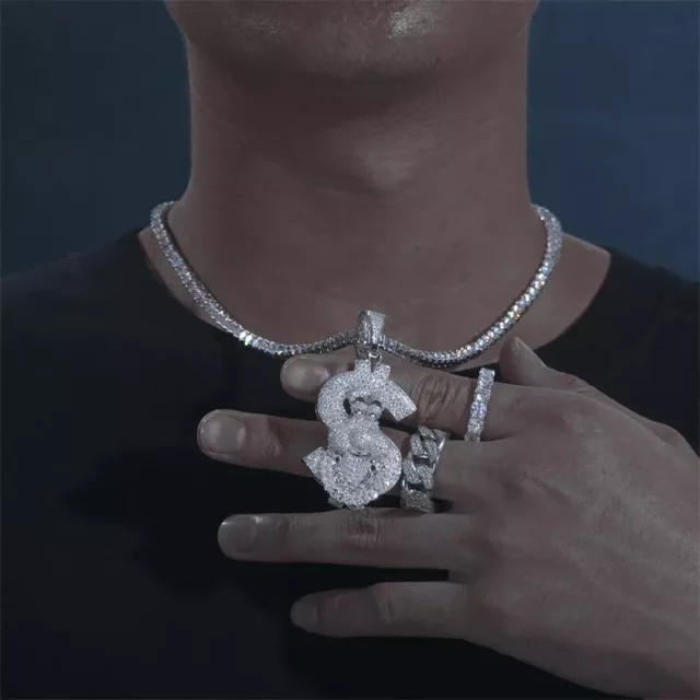Make a bold statement with this unique Moissanite Dollar Sign Necklace Pendant. Crafted in premium 925 sterling silver, this iced-out pendant is perfect for those who love to shine. Whether you’re heading to a party, a night out, or just want to add a touch of luxury to your outfit, this hip hop-style necklace is the ideal accessory. Featuring a dazzling Moissanite stone, it delivers a perfect combination of elegance and style. Unisex in design, it’s made for anyone who wants to show off their personality with a bit of sparkle.