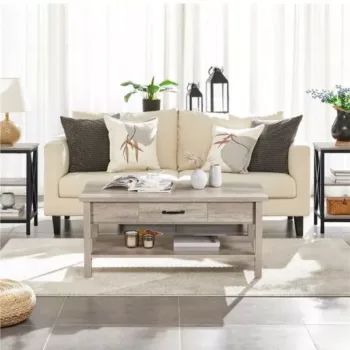 Rustic Gray Wood Coffee Table with Sliding Door and Adjustable Shelf