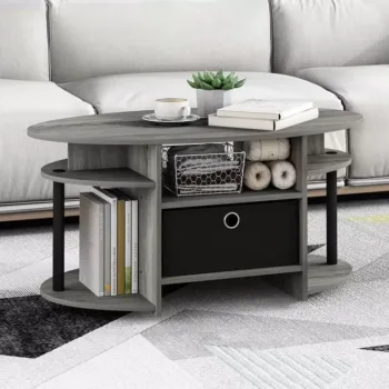Modern Turn-N-Tube Coffee Table with Storage Bins, French Oak Grey/Black