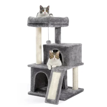 Multilevel Cat Tree with Double Condos, Spacious Perch & Scratching Post