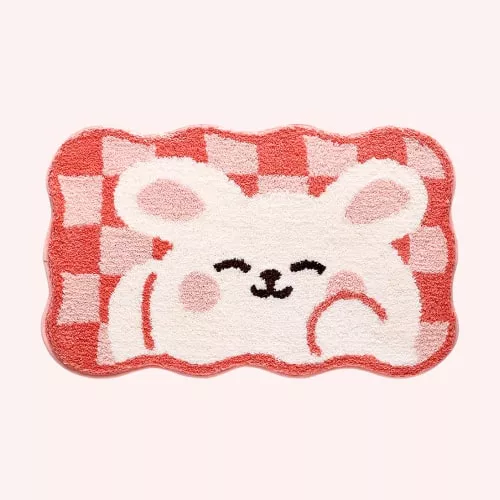 This mat is delightful, offering a thick, luxurious feel, and it washes wonderfully. I have it placed in front of my indoor bunny's litter box, surrounded by stuffed animals to create a cute environment for both of us. It's a solid 10 out of 10 in my eyes.