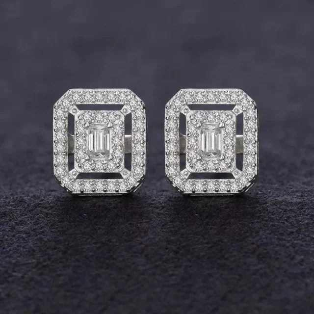These stud earrings showcase a brilliant square-cut moissanite diamond, known for its exceptional fire and brilliance. The high-quality craftsmanship ensures durability, while the solid 925 sterling silver setting enhances its sophisticated appeal. The modern geometric design adds a contemporary touch, making these earrings a must-have accessory for fashion-forward individuals.
