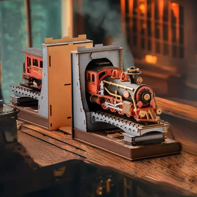 Vintage Wooden Train DIY Book Nook Kit – 3D Puzzle Bookend for Adults & Teens